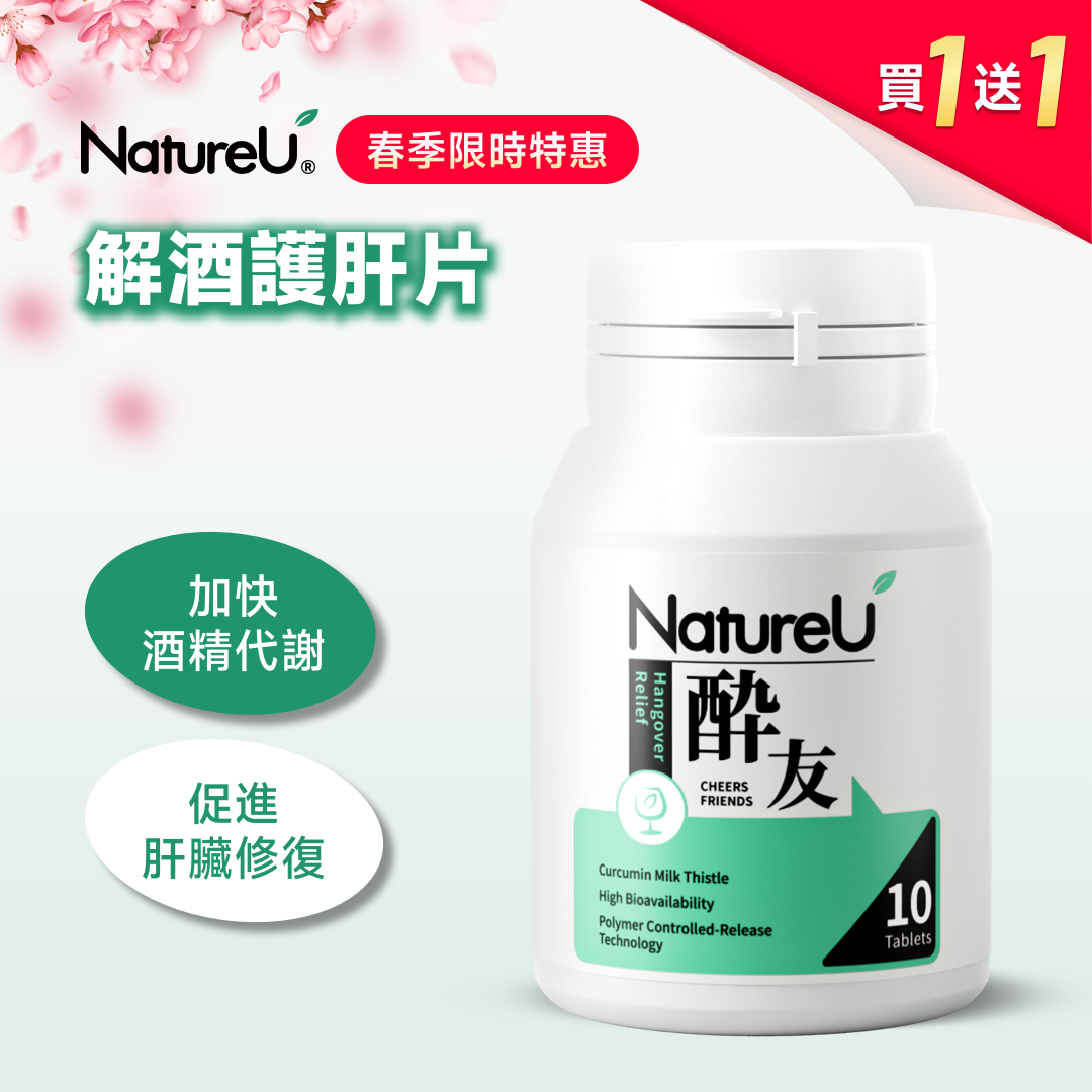 (春季特惠・買一送一)NatureU 酔友 水飛薊+厚朴酚+高分子薑黃素 解酒護肝片 Cheers Friends 10粒/瓶