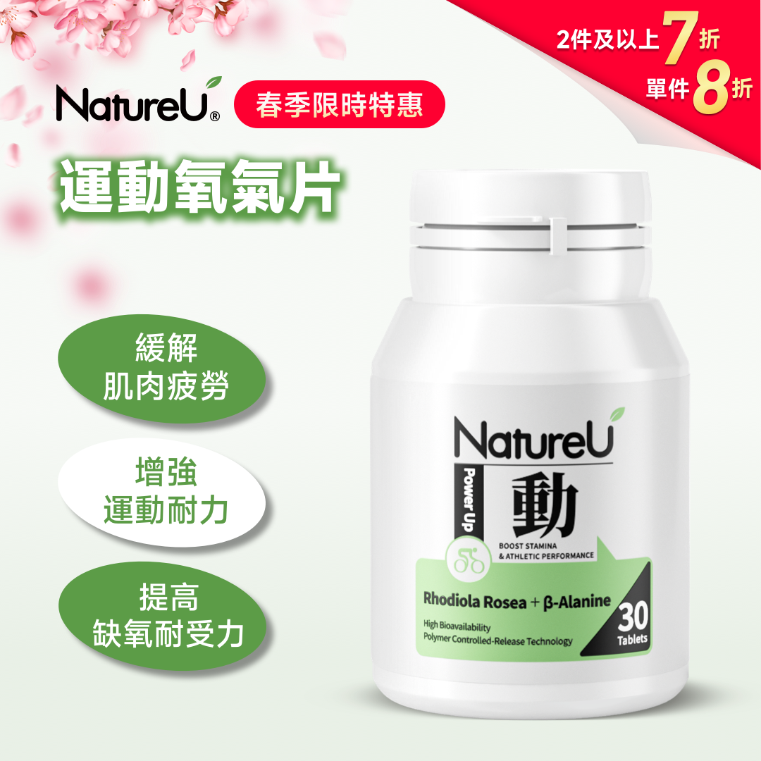 (春季特惠・单件8折・2件及以上享7折)NatureU 動 OXYMaster®+人參皂苷+VB6 氧氣片 Power Up 30粒/瓶