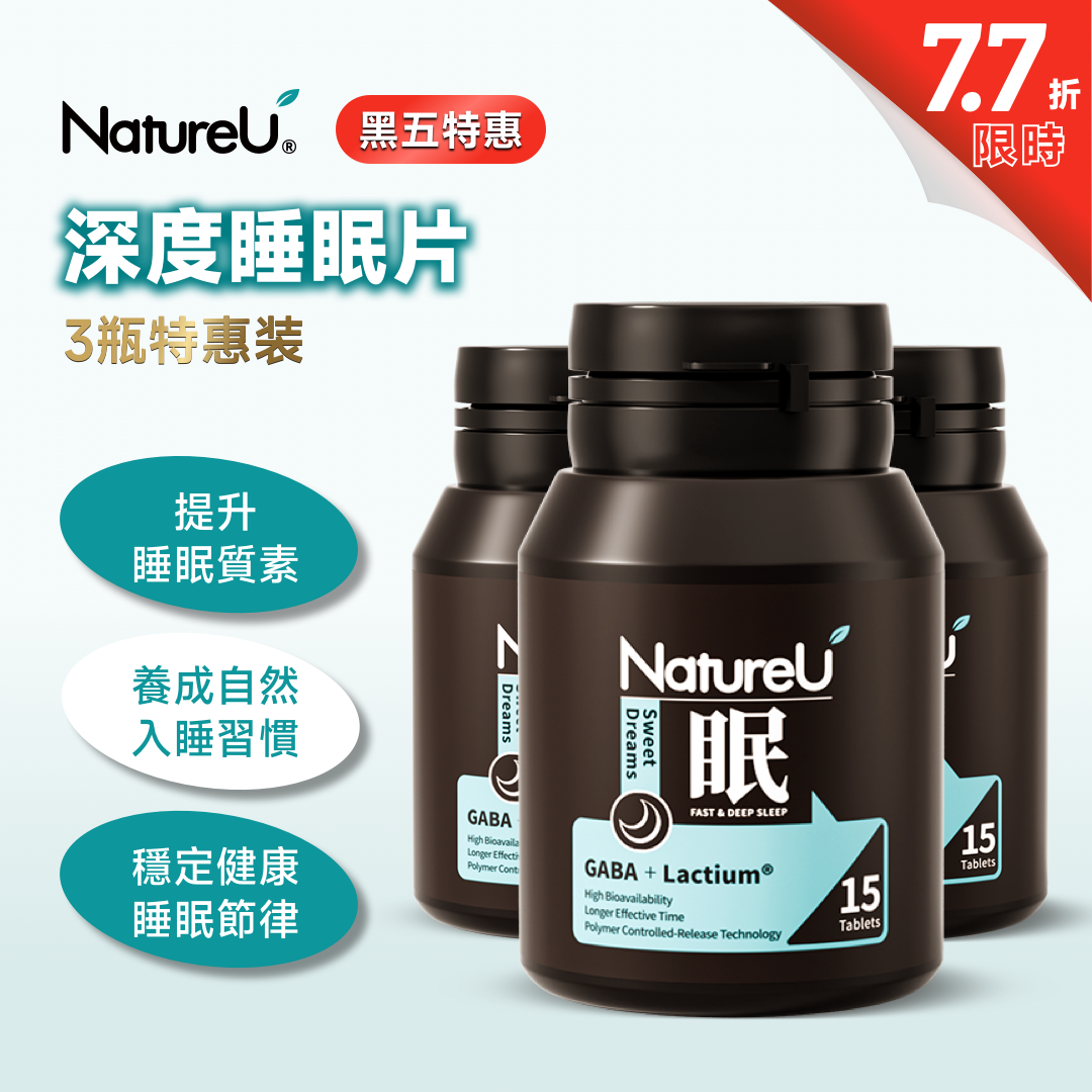 NatureU 眠 SleepMaster® GABA+Lactium® 深睡片 Deep Sleep 15粒/瓶 3瓶特惠裝
