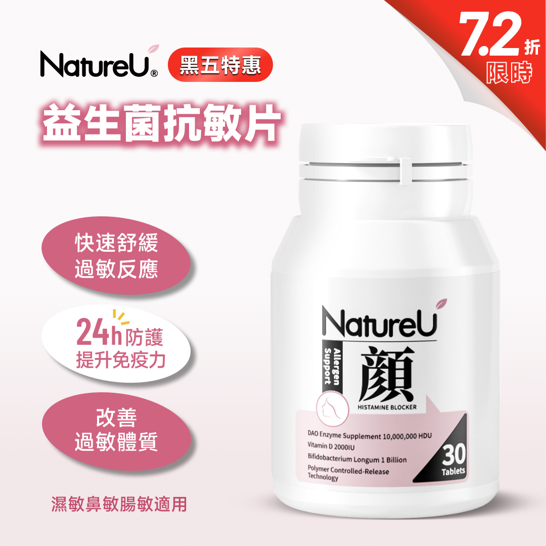 NatureU 顏 DAOMaster® 高分子VD+舒敏益生菌 抗敏片 Allergy Support 30粒/瓶