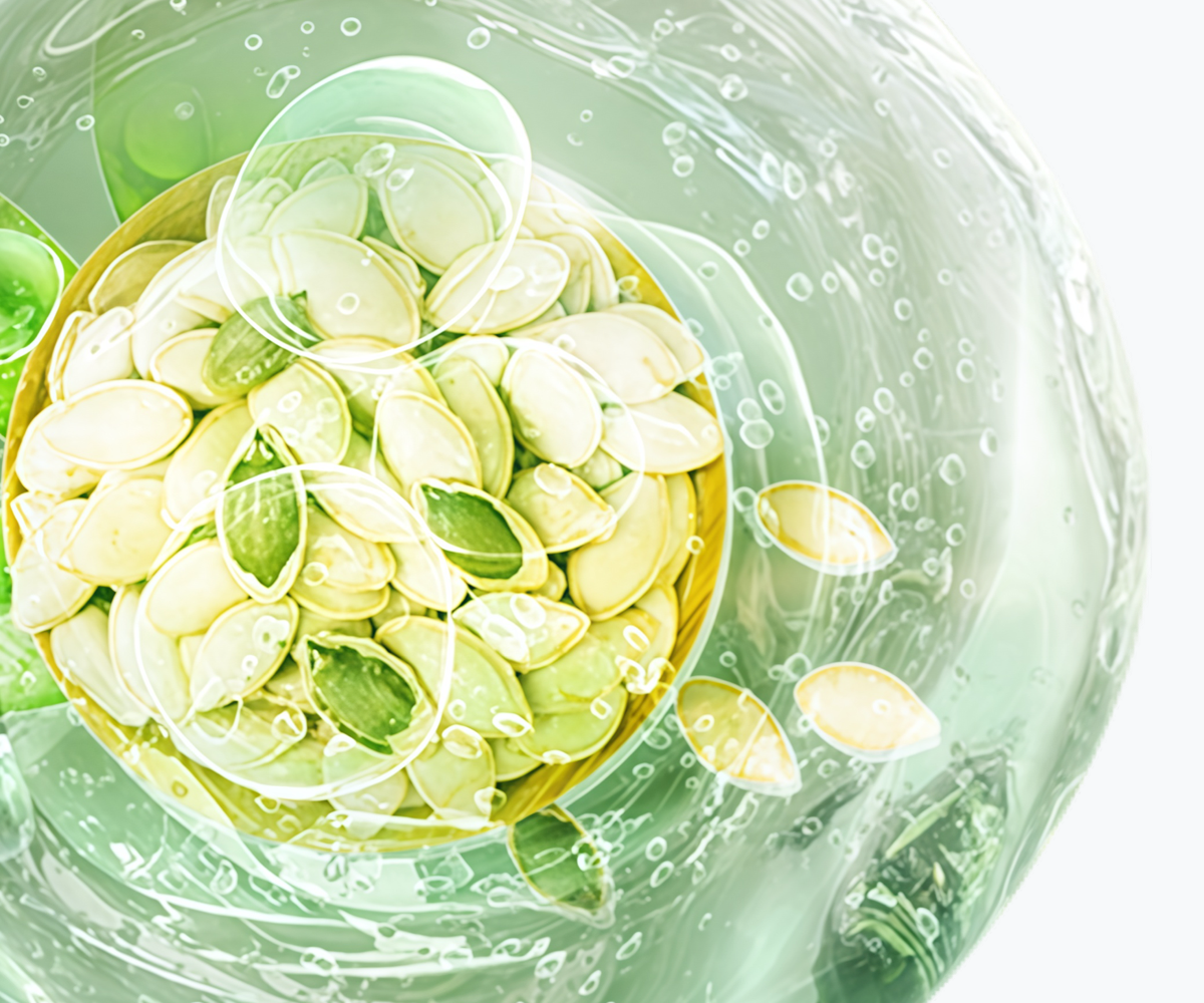 南瓜籽提取物富含維生素E、亞油酸和抗氧化劑,具抗炎、抗氧化和保濕功效,幫助促進細胞再生、修復組織,改善皮膚彈性和水分,常用於護膚品和保健品中。