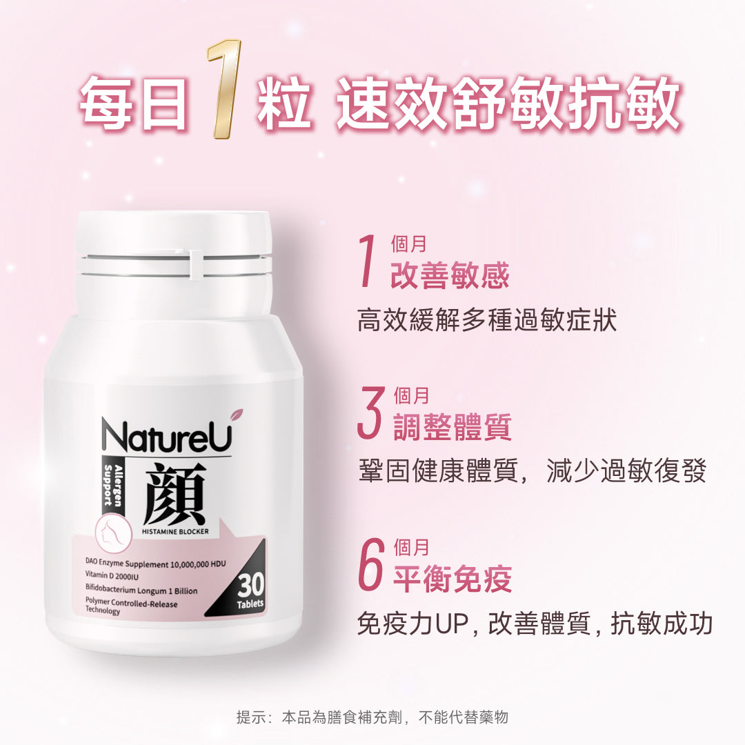 NatureU 顏 高分子VD+舒敏益生菌 脫敏片 Allergy Support 30粒/瓶