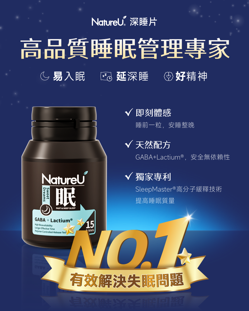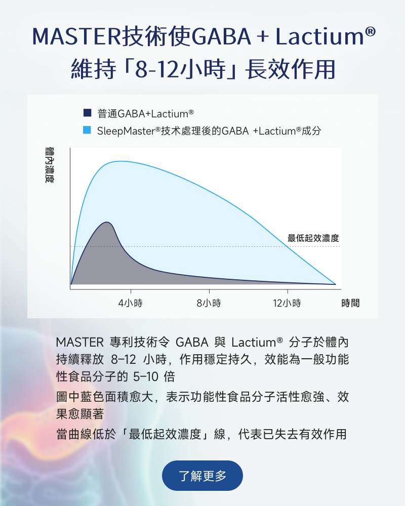 高分子GABA延長有效睡眠時間至 6 小時,深夜不易醒。